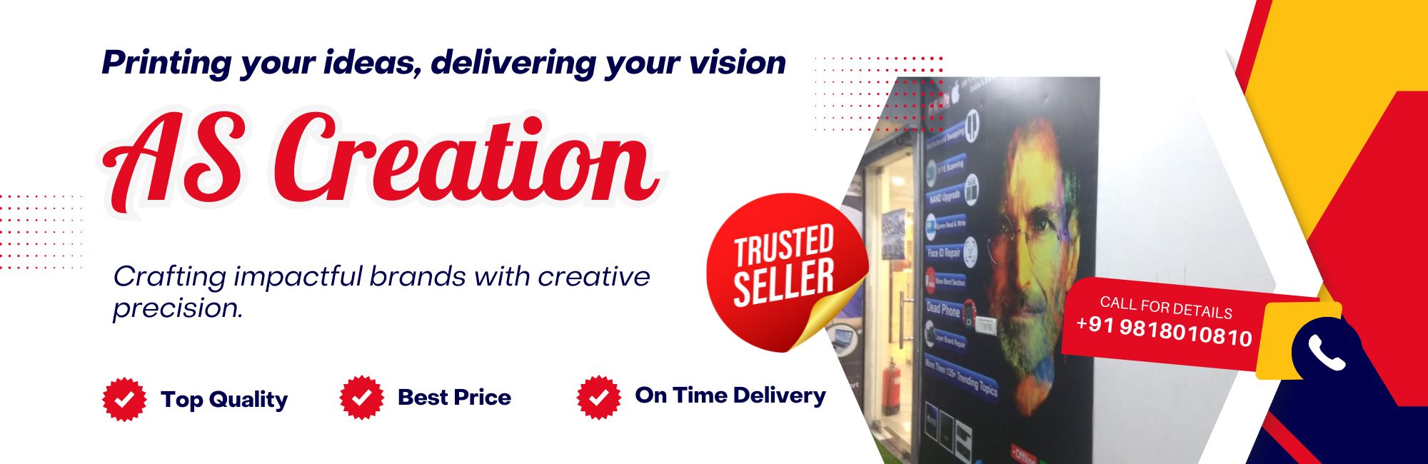 Our expertise spans across designing, printing, and delivering high-quality materials, including banners, signage, brochures, business cards, packaging, and customized merchandise. Whether you're launching a new product, running a promotional campaign, or enhancing your brand visibility, AS Creation ensures your message stands out.